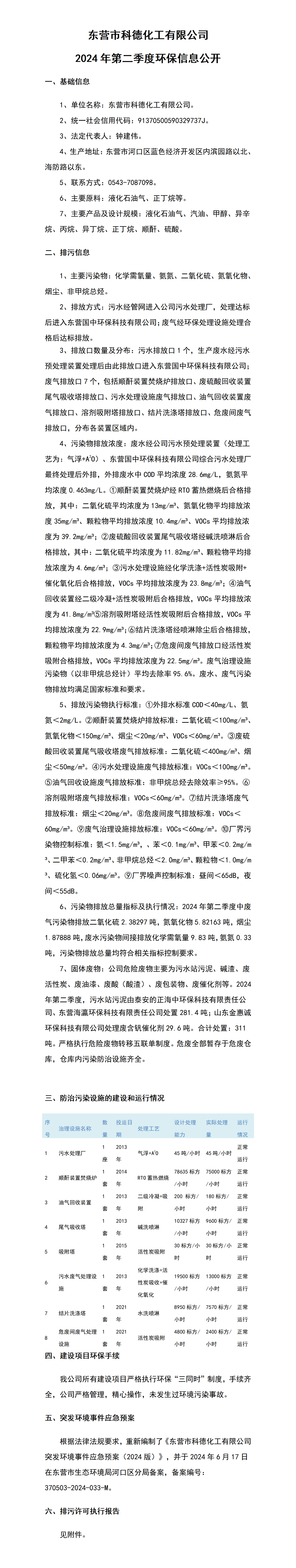 東(dōng)營市科德化工有限公司2024年第二季度環(huán)保信息公開