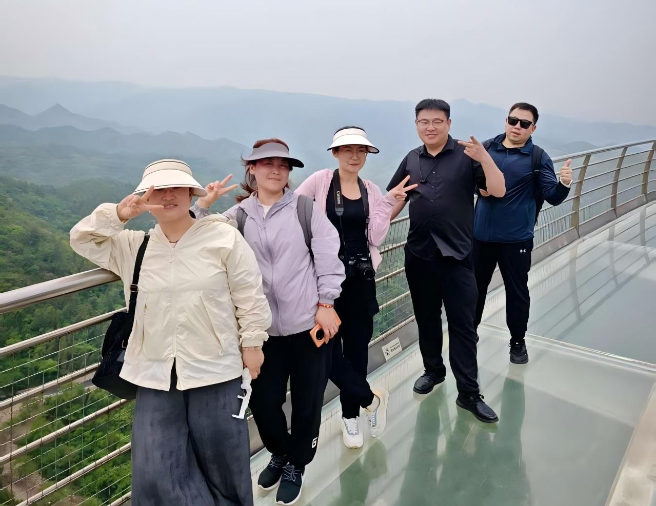 随著(zhe)行程推進,隊伍自然的分成瞭(le)三個梯隊:體力充沛的夥伴打頭陣,穿梭於山間,記錄沿途風景;中間梯隊邊走邊聊,悠然前行;最後梯隊則走走停停,享受美景,适當補充體力。大家沿途欣賞瞭(le)瀑布、九龍潭、自醉亭、大裂谷、一線天、星洞傳說等景緻,有的夥伴打卡瞭(le)驚險的玻璃橋,體驗瞭(le)刺激的漂流項目。