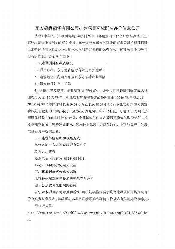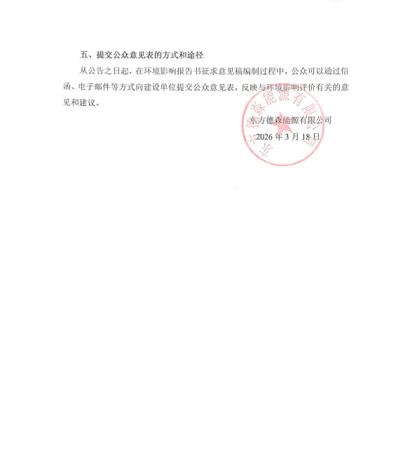 東(dōng)方德森能源有限公司擴建項目環(huán)境影響評價信息公開
